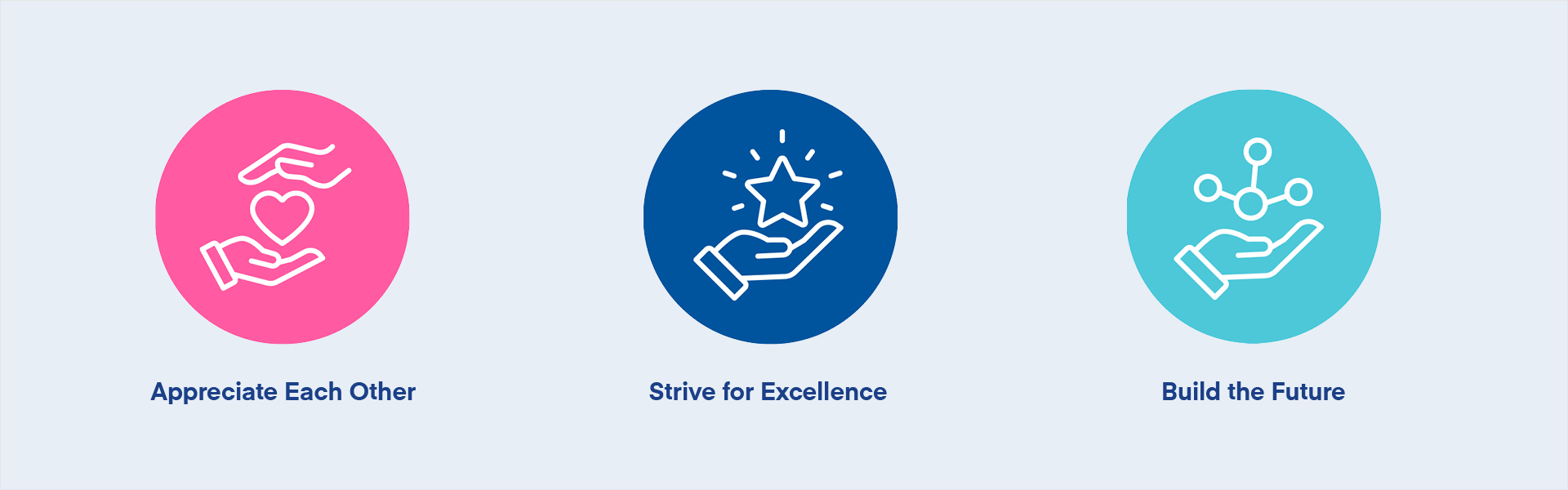 Our values convey a warm, people-oriented message. Safety and responsibility are important focuses in terms of values.